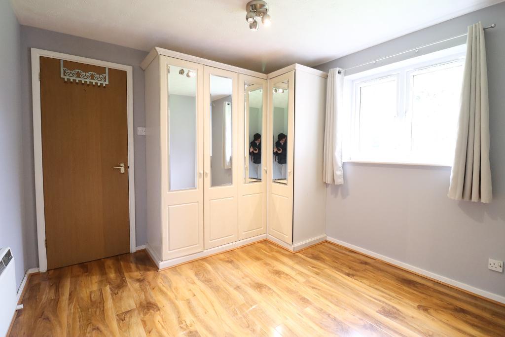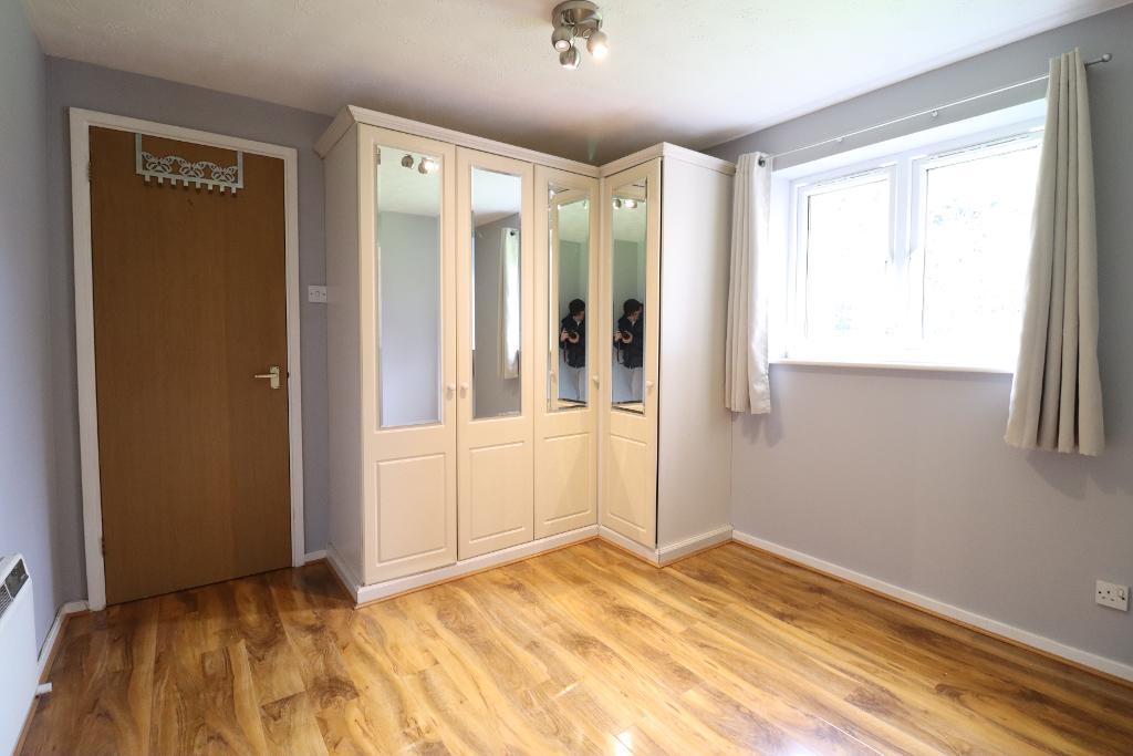 Measuring 10' 8" x 10' 11" Range of fitted wardrobes (mirror fronted) double glazed window to rear, electric heater