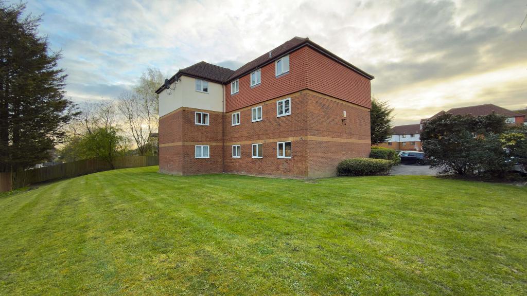 The block is surrounded by communal gardens which have been mostly laid to lawn, with scatterings of shrubbery.